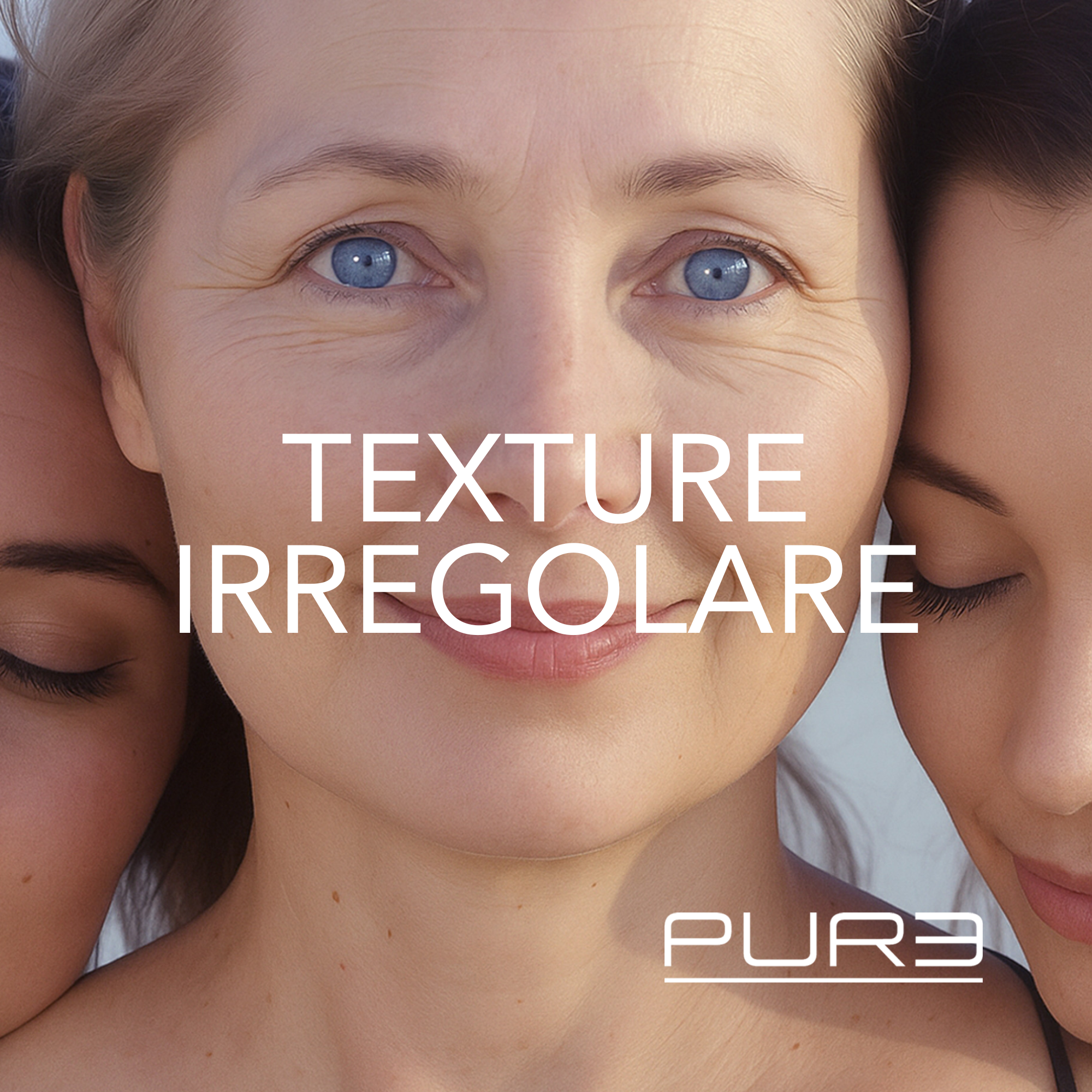 • Texture irregolare → rende la pelle più liscia e uniforme